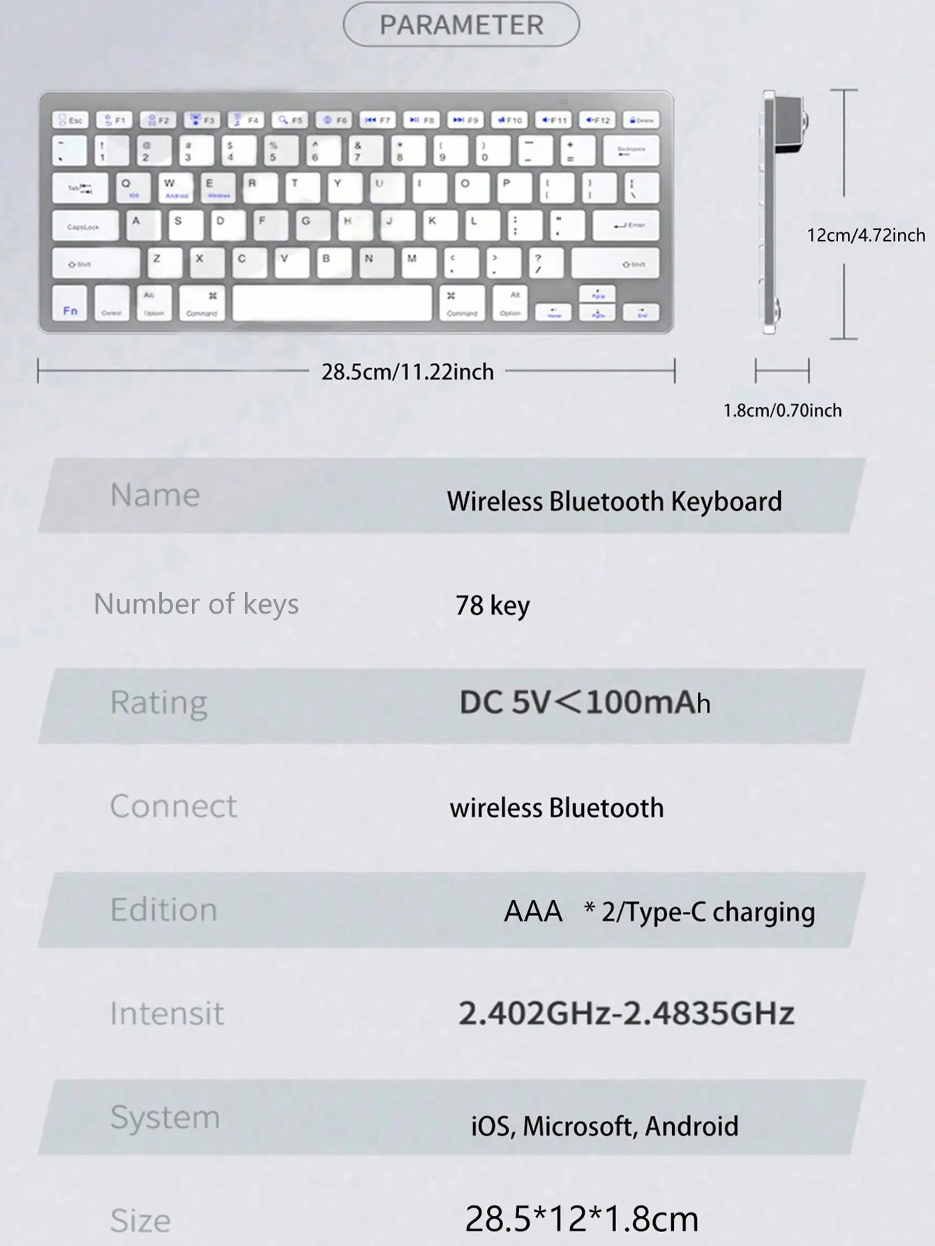 78-key mini portable wireless Bluetooth keyboard for computer and tablet, office keyboard, wireless control in seconds