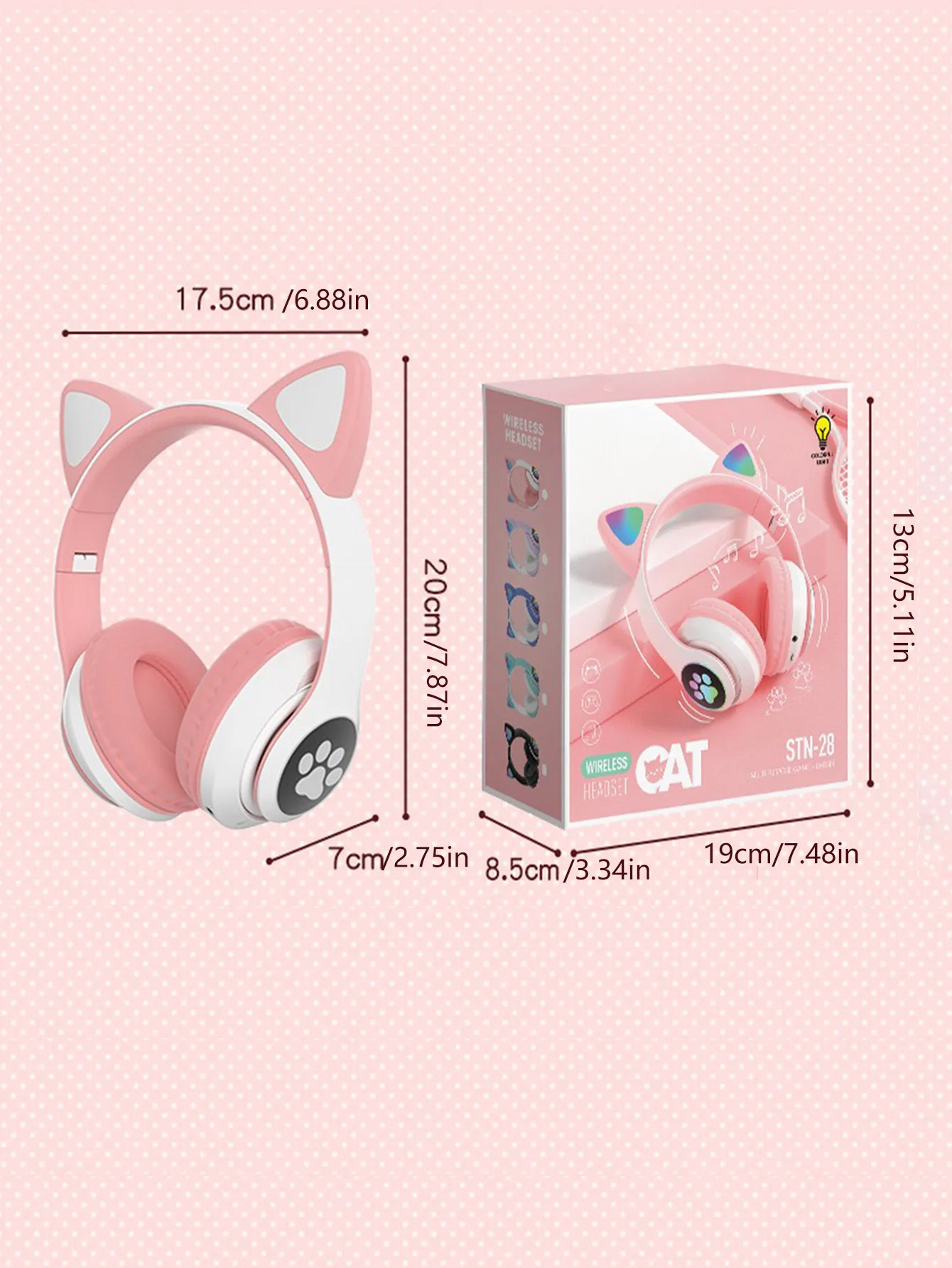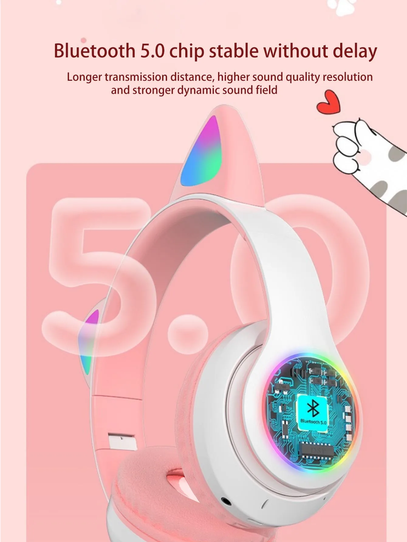 Headband RGB light cat-ear cartoon wireless Bluetooth headphones