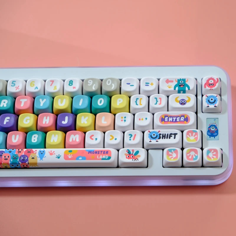 Little Monster Key Cap 129 Keys/set PBT MOA Profile Double Shot Keycap Thermal Sublimation Mechanical Keyboard for Customization