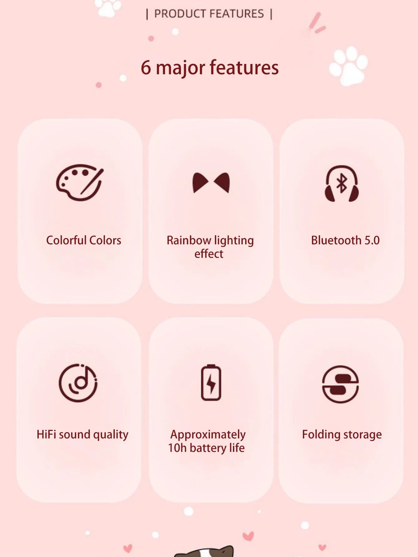 Headband RGB light cat-ear cartoon wireless Bluetooth headphones