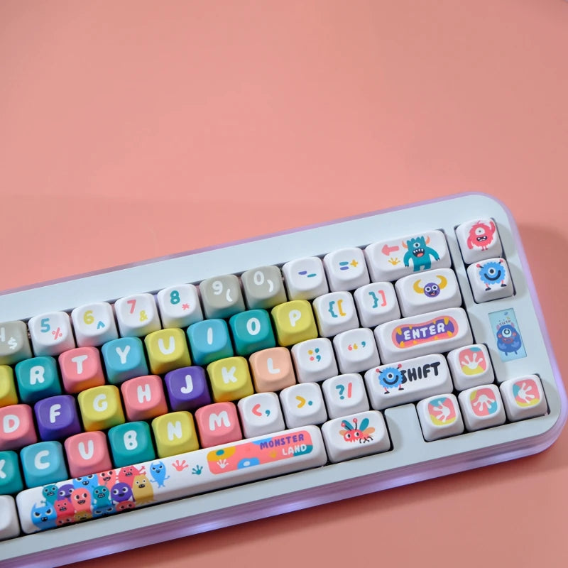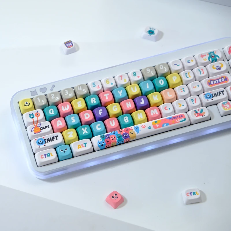 Little Monster Key Cap 129 Keys/set PBT MOA Profile Double Shot Keycap Thermal Sublimation Mechanical Keyboard for Customization